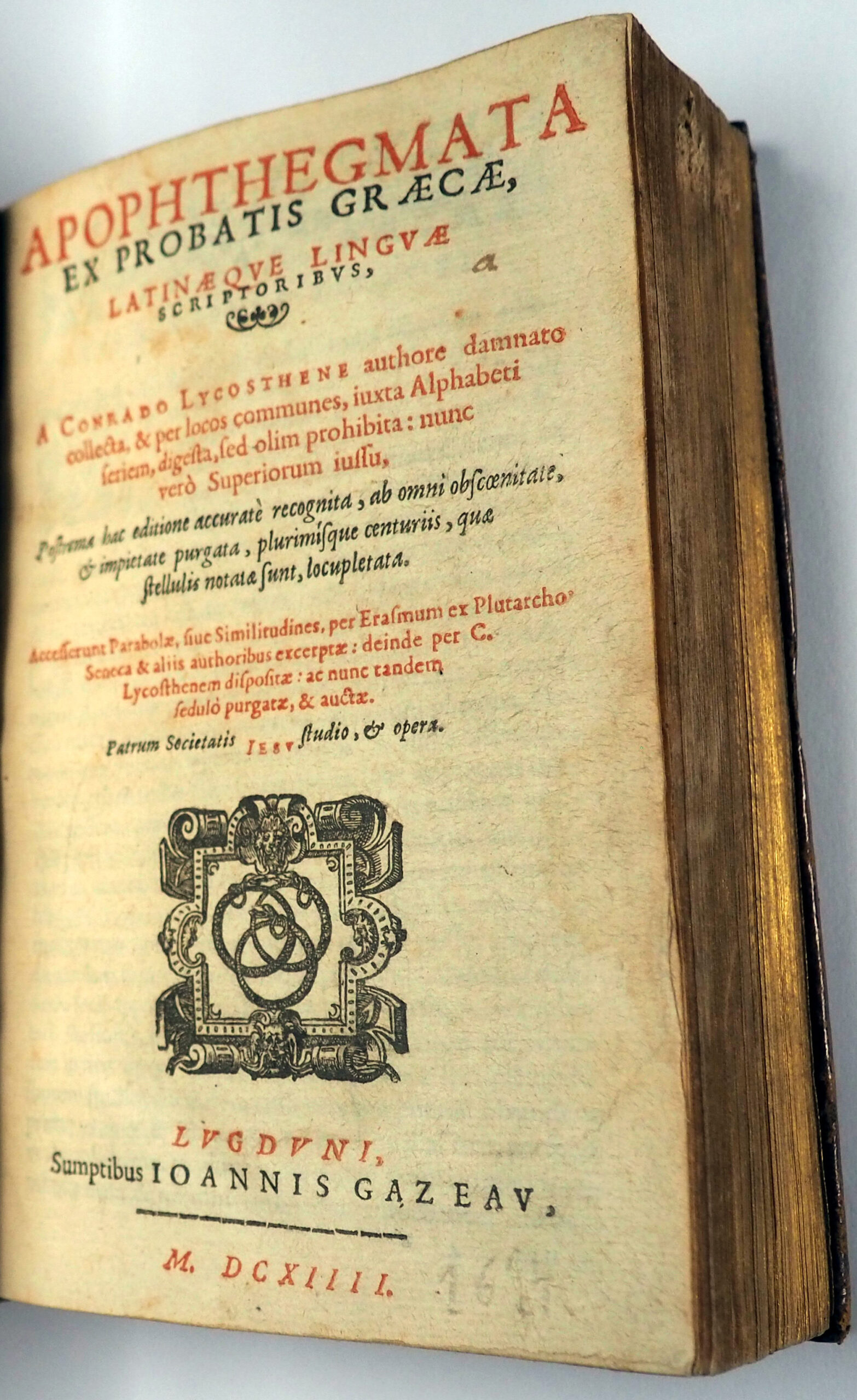 Desiderius Erasmus, Parabolae sive similitudines, per Erasmum ex Plutarcho, Seneca & aliis authoribus excerptae […] purgatae & auctae. Lyon, J. Gazeau, 1614.